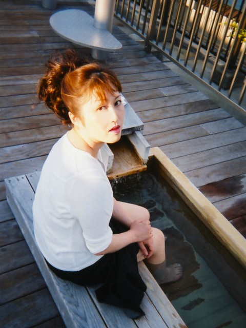 ホテル ニューアワジ、最上階に有る足湯に 浸かって居る所です。綺麗な景色を見ながら 入れるので、気持ちいいですよ。 |