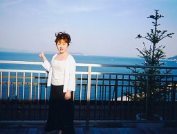 ホテルの屋上で、綺麗な海をバックに。 |